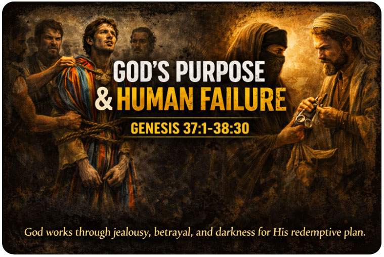 Summary: God advances His covenant through betrayal and sin, using Joseph’s suffering and Judah’s failure to move His redemptive plan forward despite human jealousy, deceit, and moral collapse.